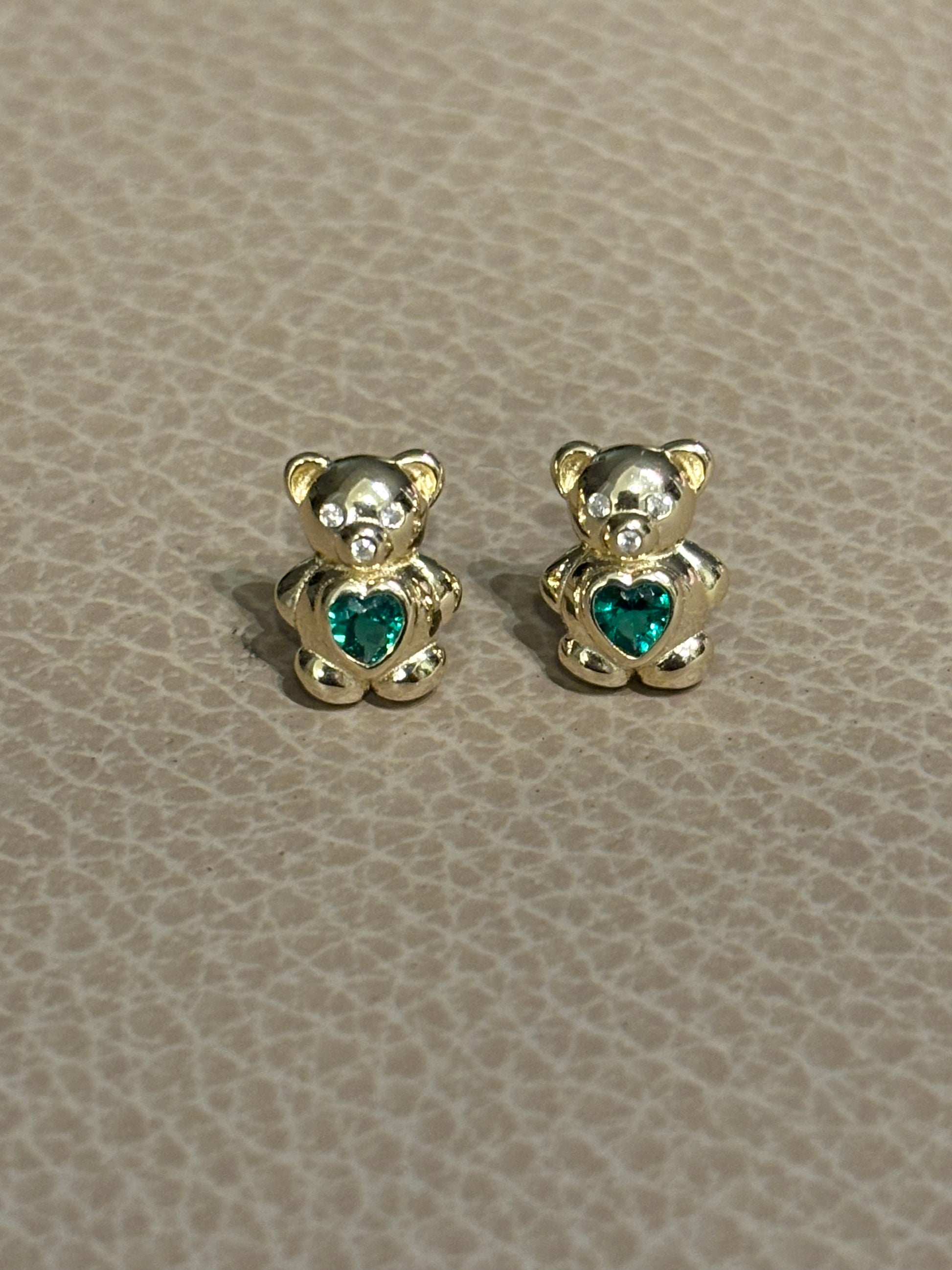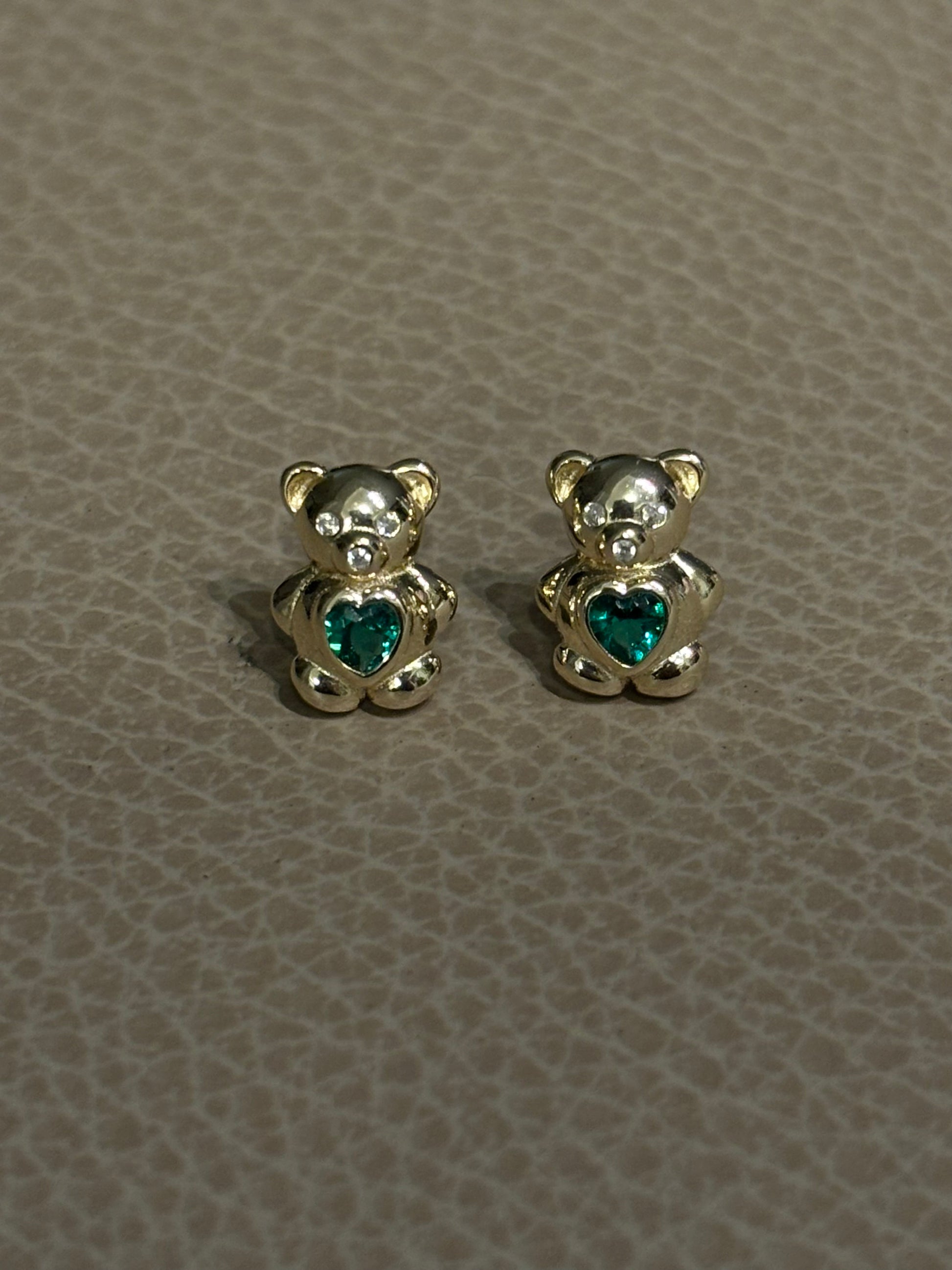 18k gold vermeil, green sapphire, 925, water friendly, hypoallergenic, stud earrings