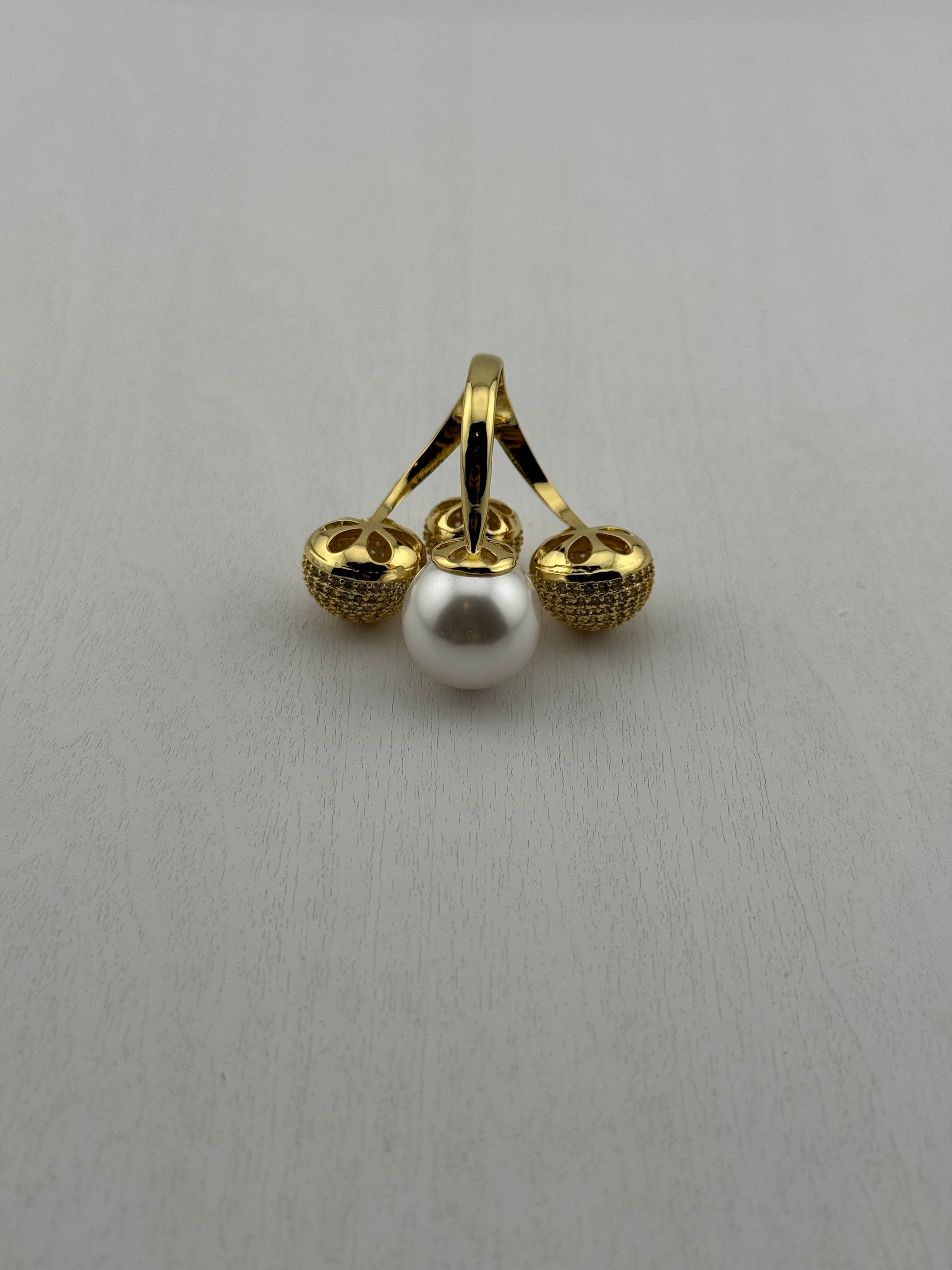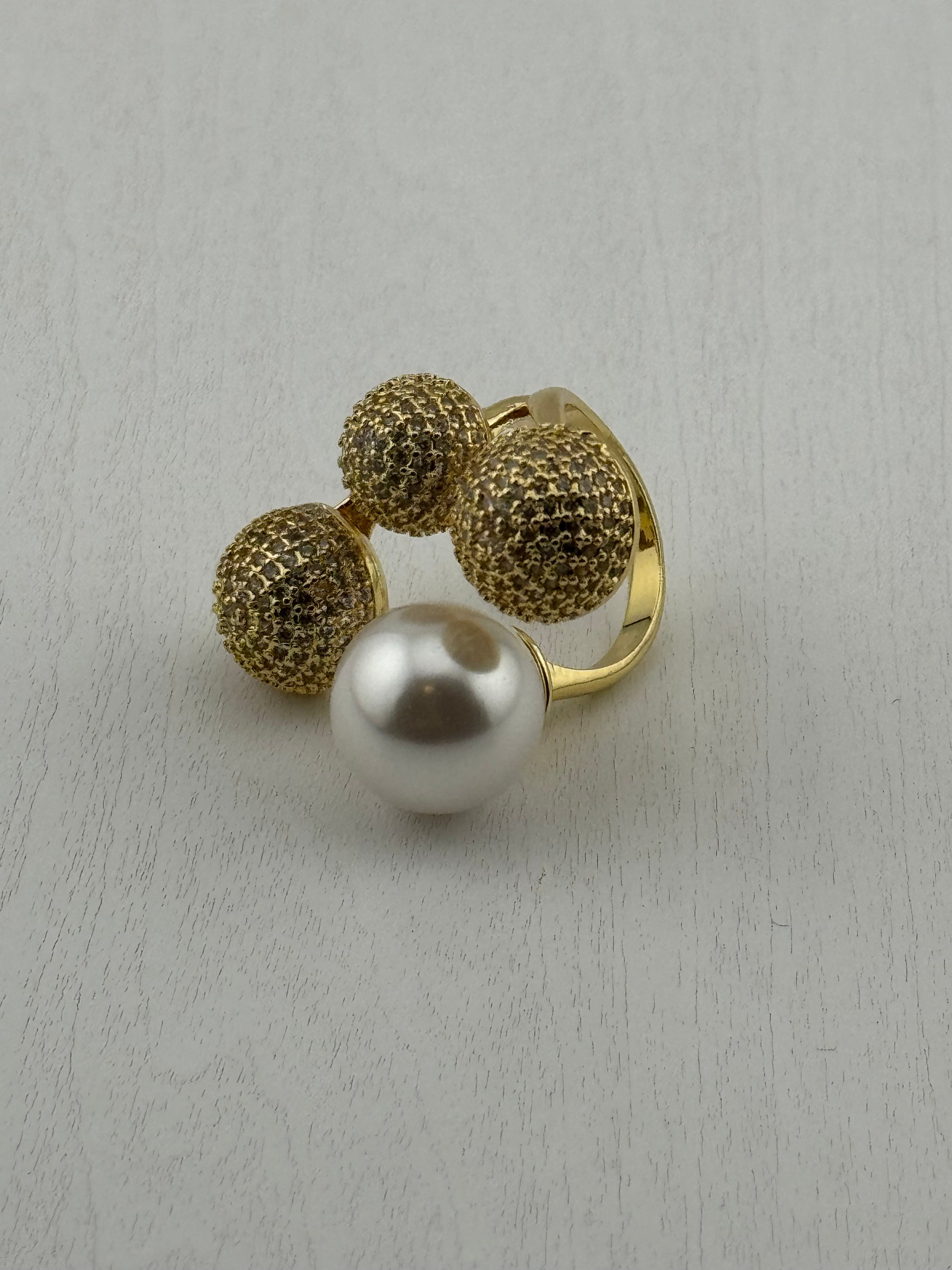 Shell pearls , white sapphire, 18k gold vermeil, hypoallergenic , adjustable size