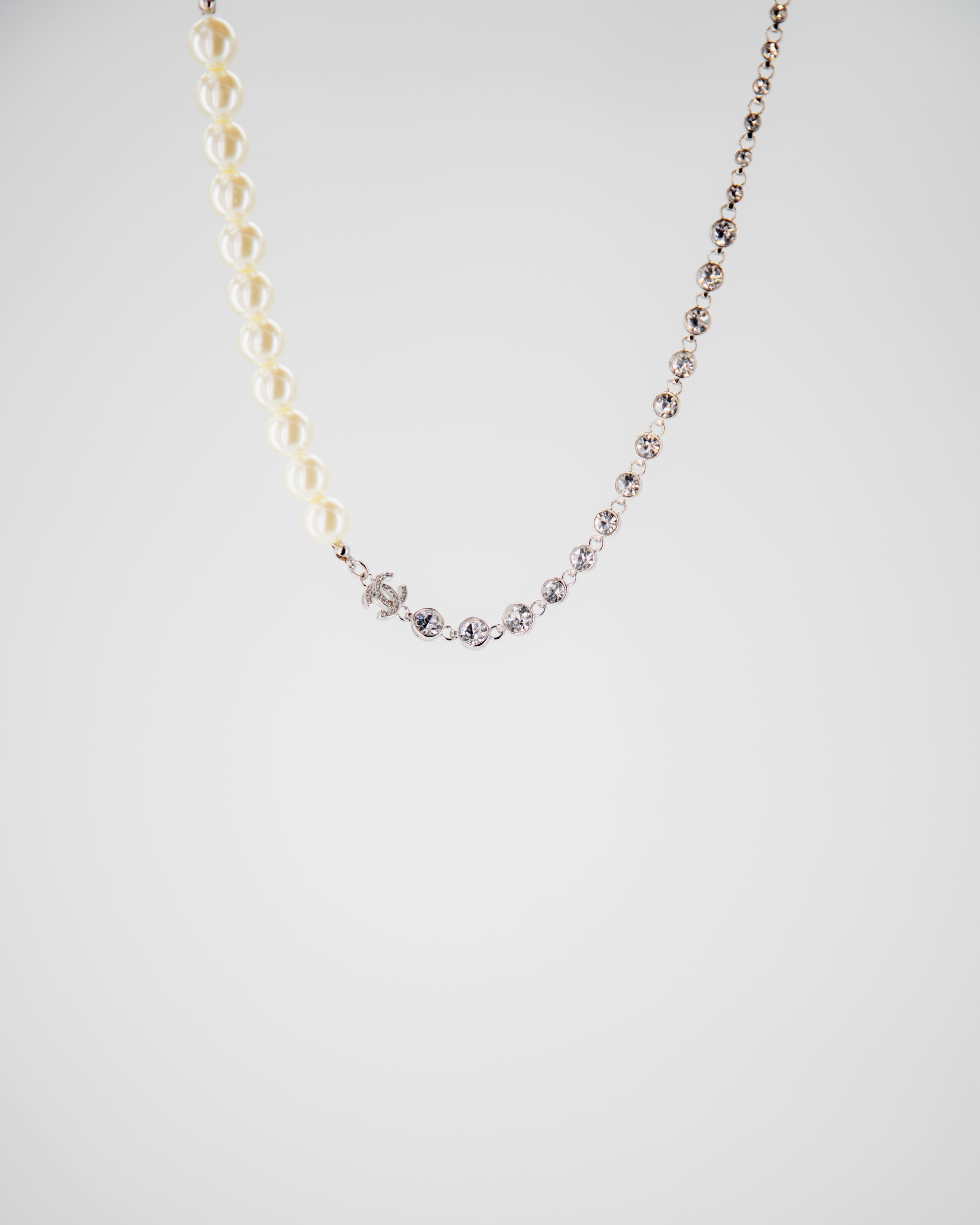 HALF AND HALF PEARL RHINESTONES NECKLACE